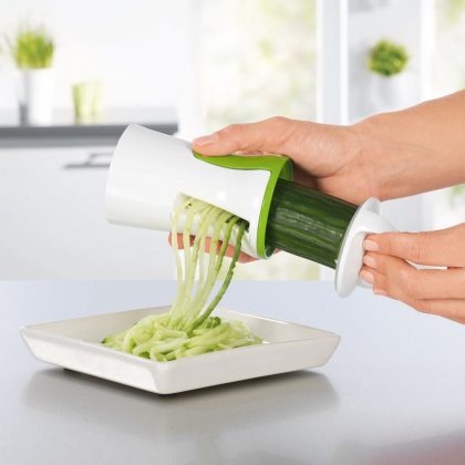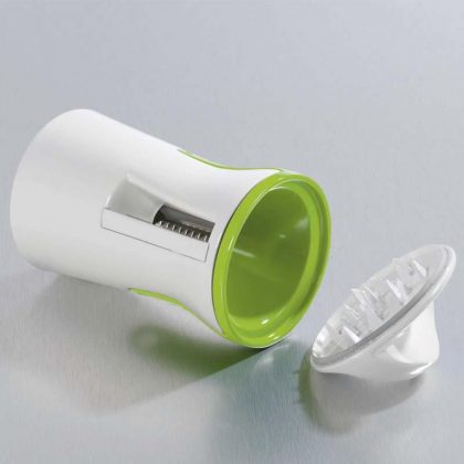 Zöldség- és gyümölcsszeletelő. Vékony spirálokra vagy széles csíkokra vág. Használatával gusztusos nyers saláta vagy zöldség metélt készíthető.