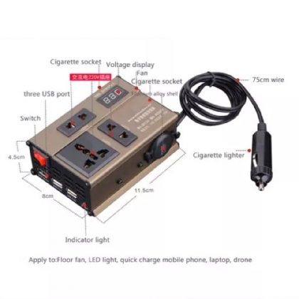 Az autós inverter az autó szivargyújtójáról működtethető, ellátták 2 db szivargyújtó csatlakozóval, és 3 db hálózati csatlakozóval, amelyek képesek fogadni a szabvány európai adaptereken kívül például az angliai és az amerikai adaptereket is.
