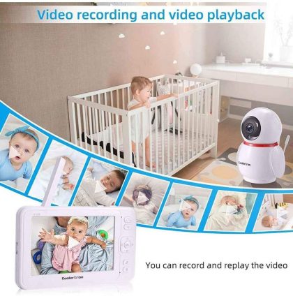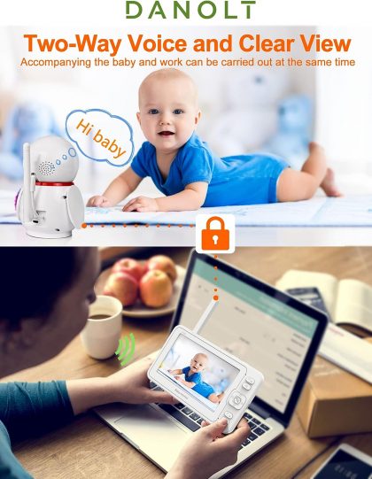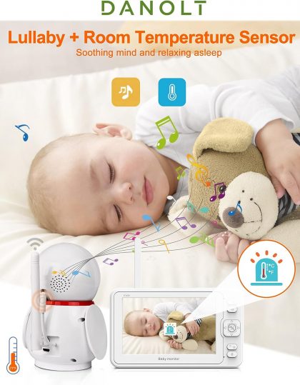 Hőmérsékletfigyelés és VOX mód: Ha a szobahőmérséklet túl magas vagy túl alacsony, vagy a baba éhes, a monitor érzékeli a baba sírását, és emlékeztetőt küld az 5,0 hüvelykes HD monitornak. Játsszon altatódalt távolról a konyhában vagy a nappaliban, hogy megnyugtassa a baba érzelmeit