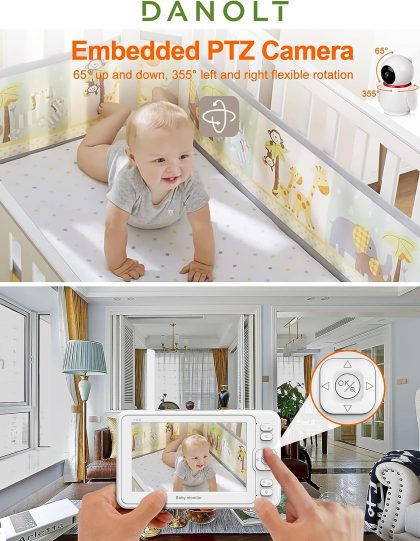 1080P LCD és forgatható dönthető: Az 5 hüvelykes video babamonitor kiváló minőségű videoképet kínál, a sokrétű látómező és a képzoom funkció biztosítja, hogy tisztán láthassa babája minden helyzetét. Nem számít nappal vagy éjszaka