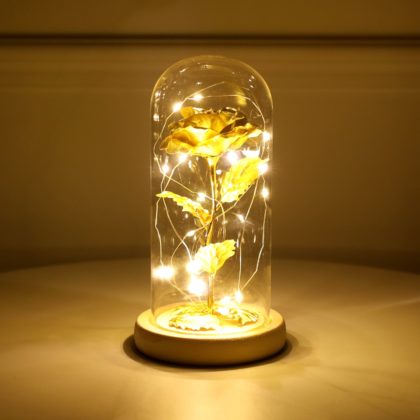 A búrába zárt rózsa örök életű. Ráadásul a meghitt háttérvilágítás még vonzóbbá teszi.
