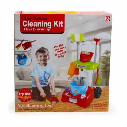 A takarító szettet a gyermekek méretéhez tervezték, de pont olyan, mint az igazi, és mindent tartalmaz, ami a takarításhoz szükséges lehet.