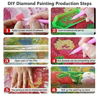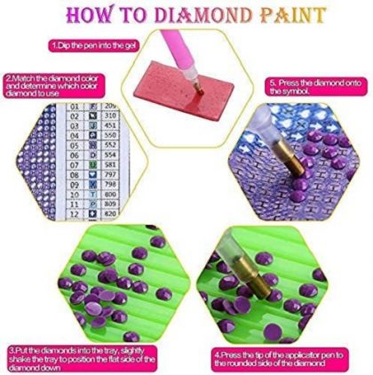 – A kövek felhelyezéséhez használd a csomagban lévő speciális tollat, amelynek a végét időnként bele kell nyomni a mellékelt szilikon lapocskába, hogy a kövek rátapadjanak a tollra és ezáltal tudod áthelyezni a köveket egyesével a vászonra. A tollhoz a mellékelt szilikon lapocska helyett gyurmaragasztót is használhatsz.