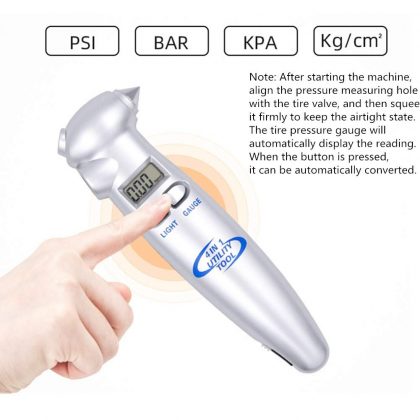 Nyomja meg a “Gauge” kapcsolót a gumiabroncs-mérő bekapcsolásához. Ha az LCD-kijelzőn “0.0” látható, az azt jelenti, hogy készen áll a gumiabroncs nyomásának mérésére. Helyezze a mérőfej fúvókáját a gumiabroncs szelepszárához, és tartsa szorosan egy másodpercig. Ezután kijelzi a keréknyomást.