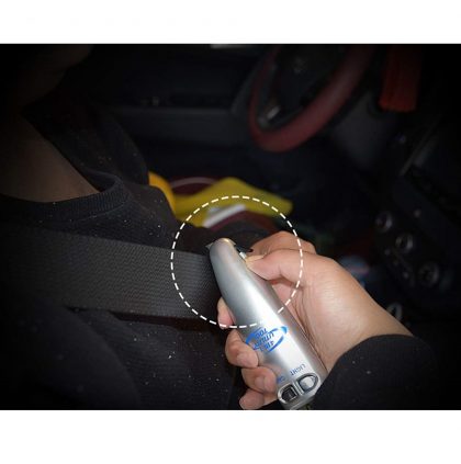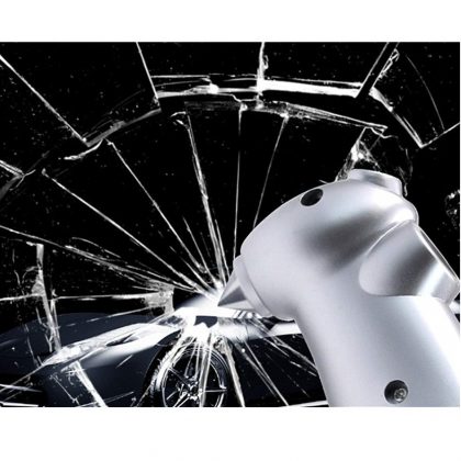 Vész esetén a másik vége a jármű ablakának betörésére is használható és tartalmaz biztonsági öv elvágót is.