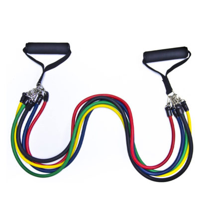 A csomagban öt darab különböző ellenállású gumikötelet, 2 párnázott fogantyút, 2 bokapánt és egy ajtórögzítőt találsz. Hozzájárul az izomtömeg hatékony felépítéséhez, növeli a test erőszintjét. A gumikötelek tetszés szerint variálhatóak, így bármilyen edzettségi állapotban használhatóak bemelegítéshez, testedzéshez férfiak és nők számára egyaránt.