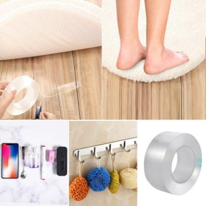 A három méter hosszú, nanogél technológiás ragasztószalag bármilyen anyag rögzítésére megfelelő, legyen szó képekről, dekorációs elemekről, házszámról, fürdőszobai kiegészítőkről, elektronikai cikkekről, szőnyegekről, kulcsokról.
