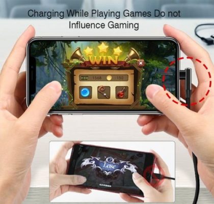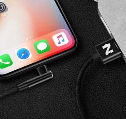 L alakú Type-C töltő kábel szövet kábelborítással.