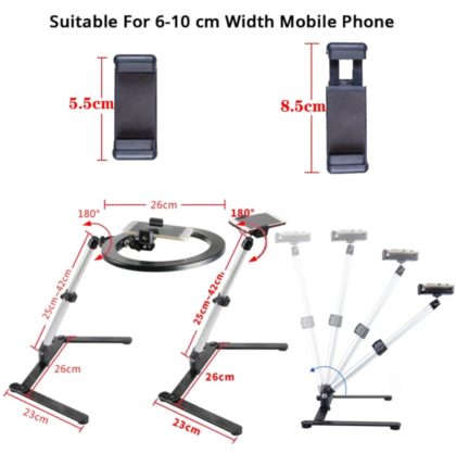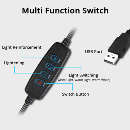 A lámpa közepén behelyezve a telefont egy telefontartóba, amivel tökéletes megvilágítású képeket készíthetsz. A lámpa magasságát 25 és 42 cm között állíthatod. A lámpa USB csatlakozóról működik, így elég a számítógépedbe, hálózati adapterbe, vagy egy power bankba bedugnod. A vezérlővel a lámpa fényerejét és színhőmérsékletét állíthatod. Teljesen összecsukható, szétszerelhető, így táskádban simán elfér!
