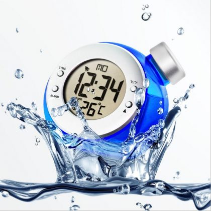 Vízóra elem nélkül, mindaddig működik amíg az üveg tele van vízzel az óra hátsó részén, világosan meg tudja jeleníteni az időt és a dátumot, csak néhány hét múlva kell újabb vizet tölteni .