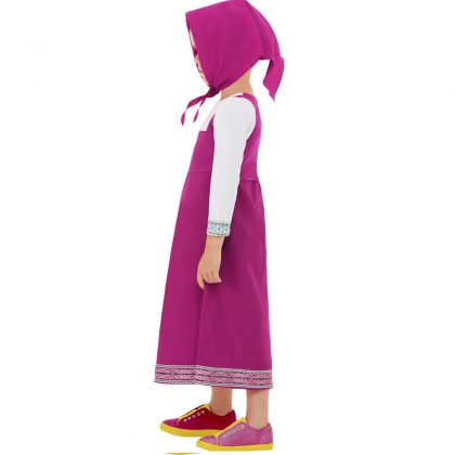 A Mása farsangi jelmez anyaga kényelmes, rosszalkodni és futkározni is lehet majd benne. Gyermeked Mása bőrébe bújhat.