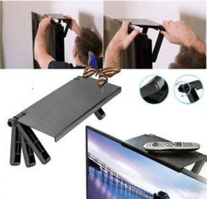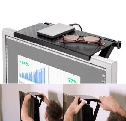 Tárold távirányítód, szemüveged és egyéb dolgad ezen a praktikus tv-re, monitorra helyezhető polcon.