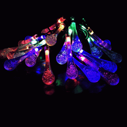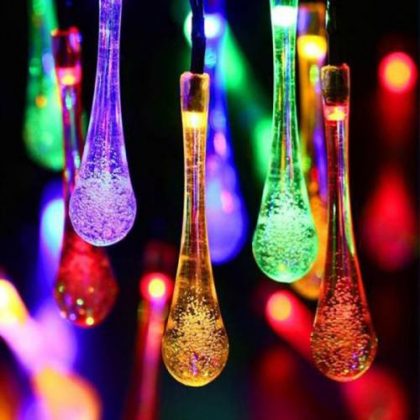 Napelemes Karácsonyi LED égősor, Kerti Fényfüzér, Kültéri, Színes Esőcsepp