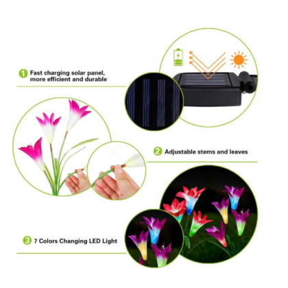 A 72 centiméter magasságú száron 3 hatalmas virágfej foglal helyet. Mindegyik virágot 1-1 hideg fehér LED világítja meg belülről.