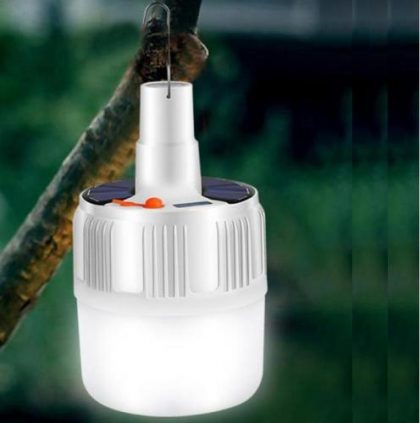 Sátorozáshoz, horgászáshoz, kerti mulatságokhoz jó választás ez a praktikus, napelemmel tölthető hordozható lámpa.