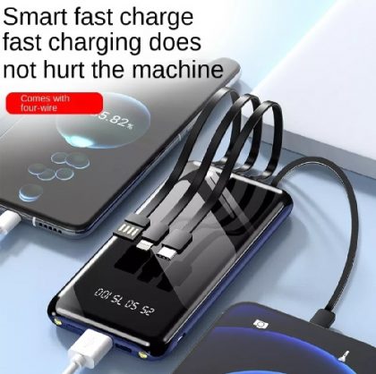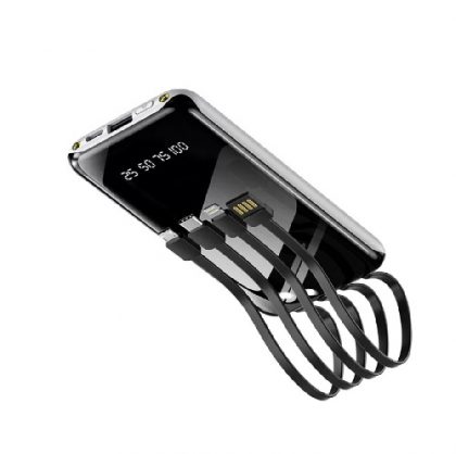 A PowerBank nem foglal sok helyet, a zsebedben is elfér és egyszerre akár 3 készüléket is tölthetsz rajta. A PowerBankon található USB, Micro USB, Type-C és Lightning kábel, amit ha nem használsz egyszerűen a PowerBank-en rögzíthetsz, valamint egy USB kábel is csatlakozik hozzá, amivel magát a készüléket töltheted, de külön USB kábellel és Type-C kimenetű kábellel is tölthető.