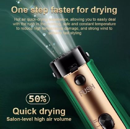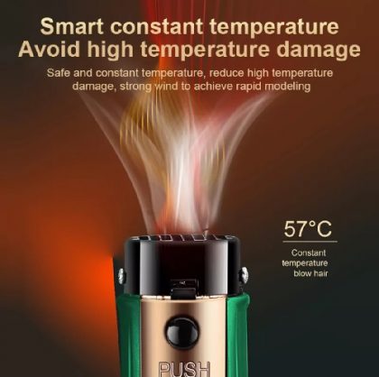 A professzionális hajszárító 2 erősségi fokozatban állítható, a 3 db cserélhető fej között körkefét, frufru beszárítót és egy hagyományos szárító fejet találsz. A hajszárító szárítási hőmérséklete 60 °C, mely kevésbé károsítja a hajszálakat, ezáltal kevésebb roncsolja a hajat, így a töredezett hajvégek miatt sem kell aggódnod.