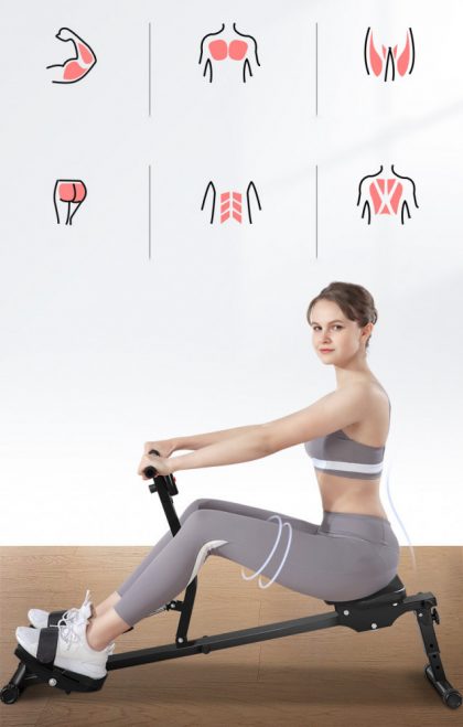 Funkció: Az evezős edzőeszközök az aerob gyakorlatok révén javítják a kardiopulmonális működést, így a gép megfelelő mennyiségű testmozgást biztosít az egész test számára. Segíthet kalóriát égetni, fejleszteni általános erejét és javítani egészségi állapotán, így biztosítva a hatékony és kényelmes edzésélményt.