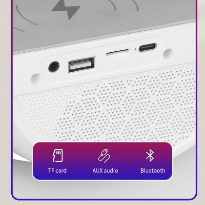 RGB fényű asztali lámpás Bluetooth hangszóró vezeték nélküli töltővel, amely tökéletes ajándék mindenkinek, aki szereti a technológiát és a stílust.