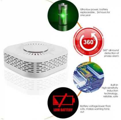 - Füst esetén sípolva és LED fénnyel riaszt.