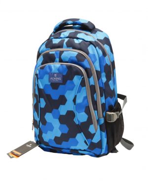 AOKING Kék-szürke-fekete mintás hátizsák, iskolatáska